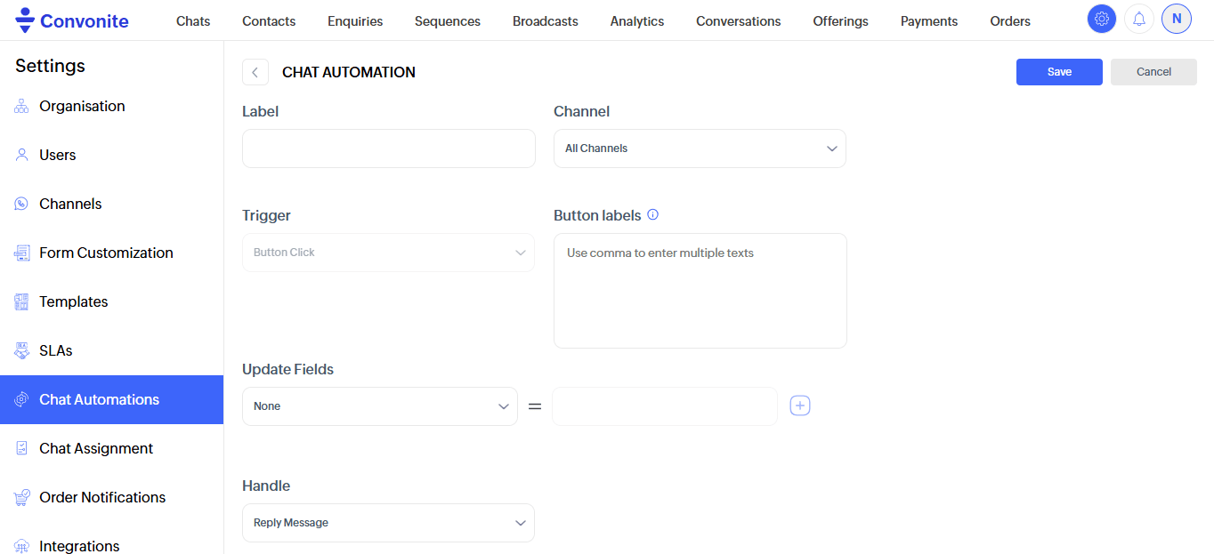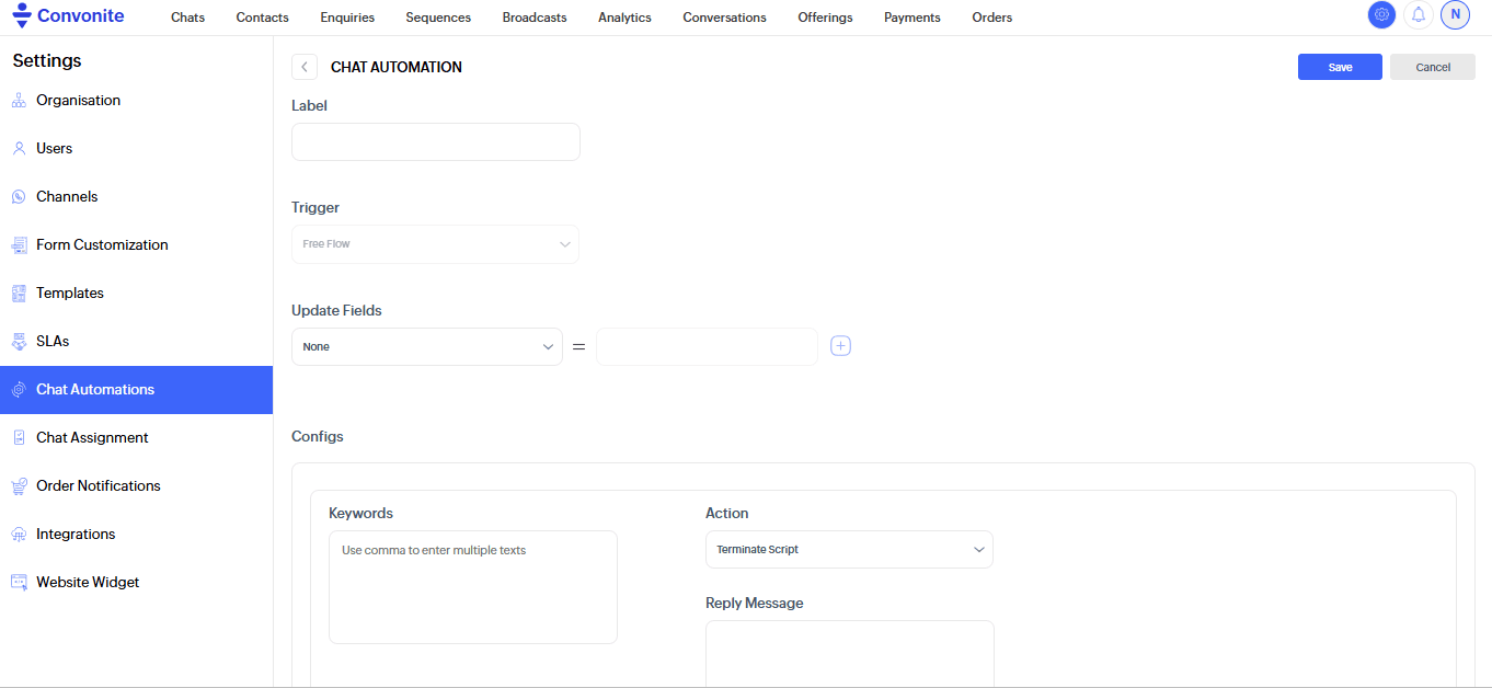 Chat Automation allows you to trigger automatic actions based on incoming WhatsApp messages. This helps reduce manual workload, ensures faster responses, and keeps conversations organized.