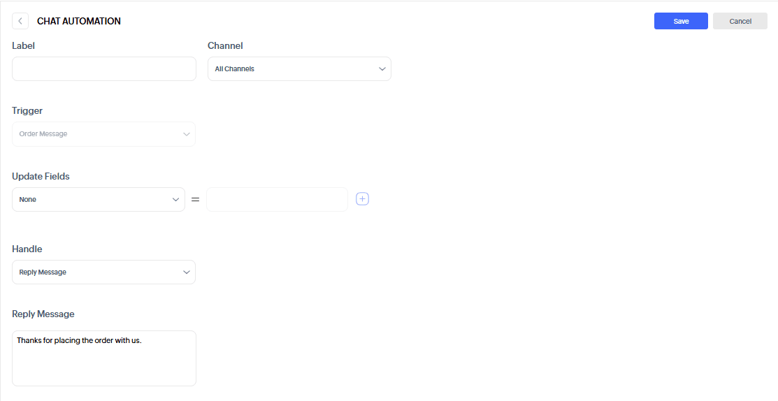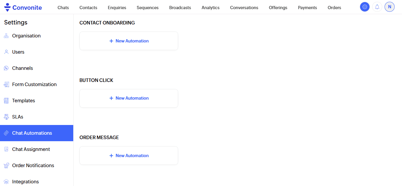 Click on the '+New Automation' button under the Order message section in Chat Automations.