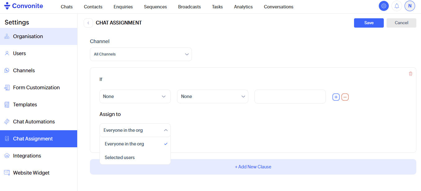 When a Chat is created or re-opened (such as when a customer sends a new message), the system automatically attempts to assign it to a team member based on predefined assignment rules.