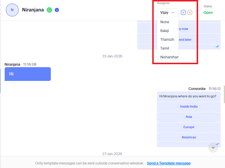 When a new customer conversation (referred to as a Chat) is initiated via WhatsApp, it is essential that a team member assumes responsibility for managing it. This individual is referred to as the Assignee.