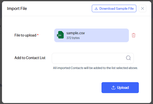 Bulk upload options allow businesses to import large lists of Contacts from existing external sources (e.g., spreadsheets or databases).