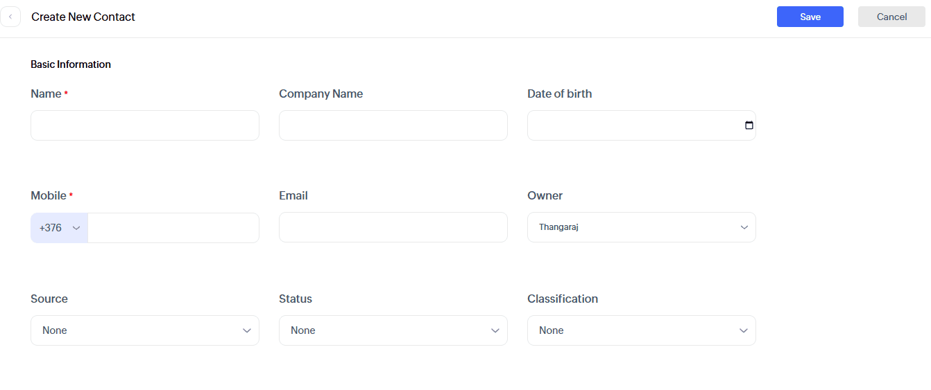 Manual or Imported Contacts – The user who creates or imports the Contact automatically becomes its owner.