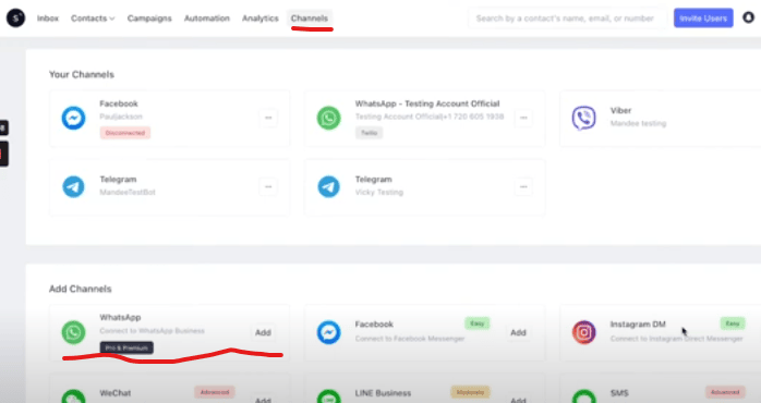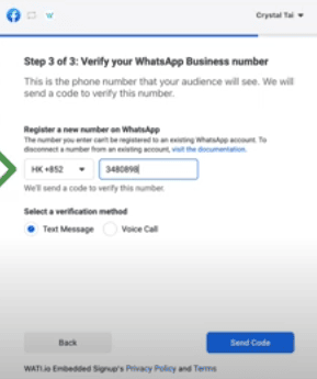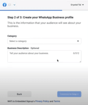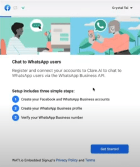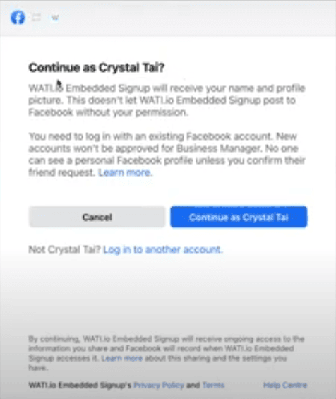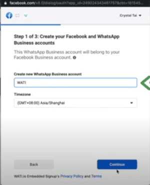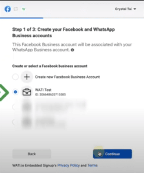 Click on Continue with Facebook in WATI or select the Whatsapp Channel in Sleekflow.