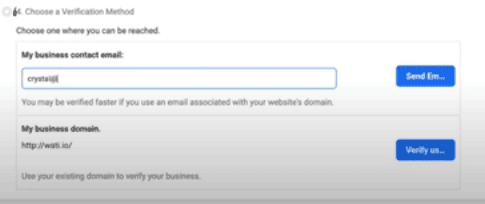-A confirmation code will be sent if you choose email, phone, text message or WhatsApp. To confirm via domain verification, follow these steps. 6. Submit Required Documents (if applicable):