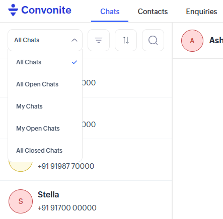 All Open Chats: Shows all chats that are currently open, including those assigned to other team members.